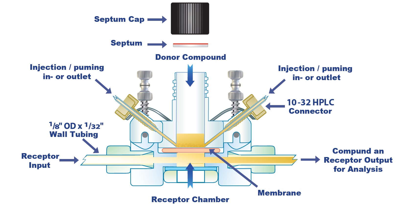 type Franz Cell with a very small receptor volume. In-Line Cells locate