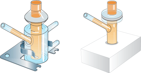 Once again, the two drawings below illustrate different ways to change the receptor chamber volume of a jacketed Franz Cell. The lefthand drawing approximates a 15mm cell with a cylindrical receptor chamber of 12ml. The righthand drawing shows a 20mm cell having a receptor chamber of reduced diameter and height, in this case the same size as a 15mm cell, inside the heating jacket. Our standard 20mm cells have 15ml receptor volumes, but the one shown is approximately 12ml like the 15mm cell.