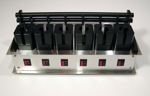 This stirrer with black anodized aluminum cell holders is otherwise identical to the V6A Stirrer.